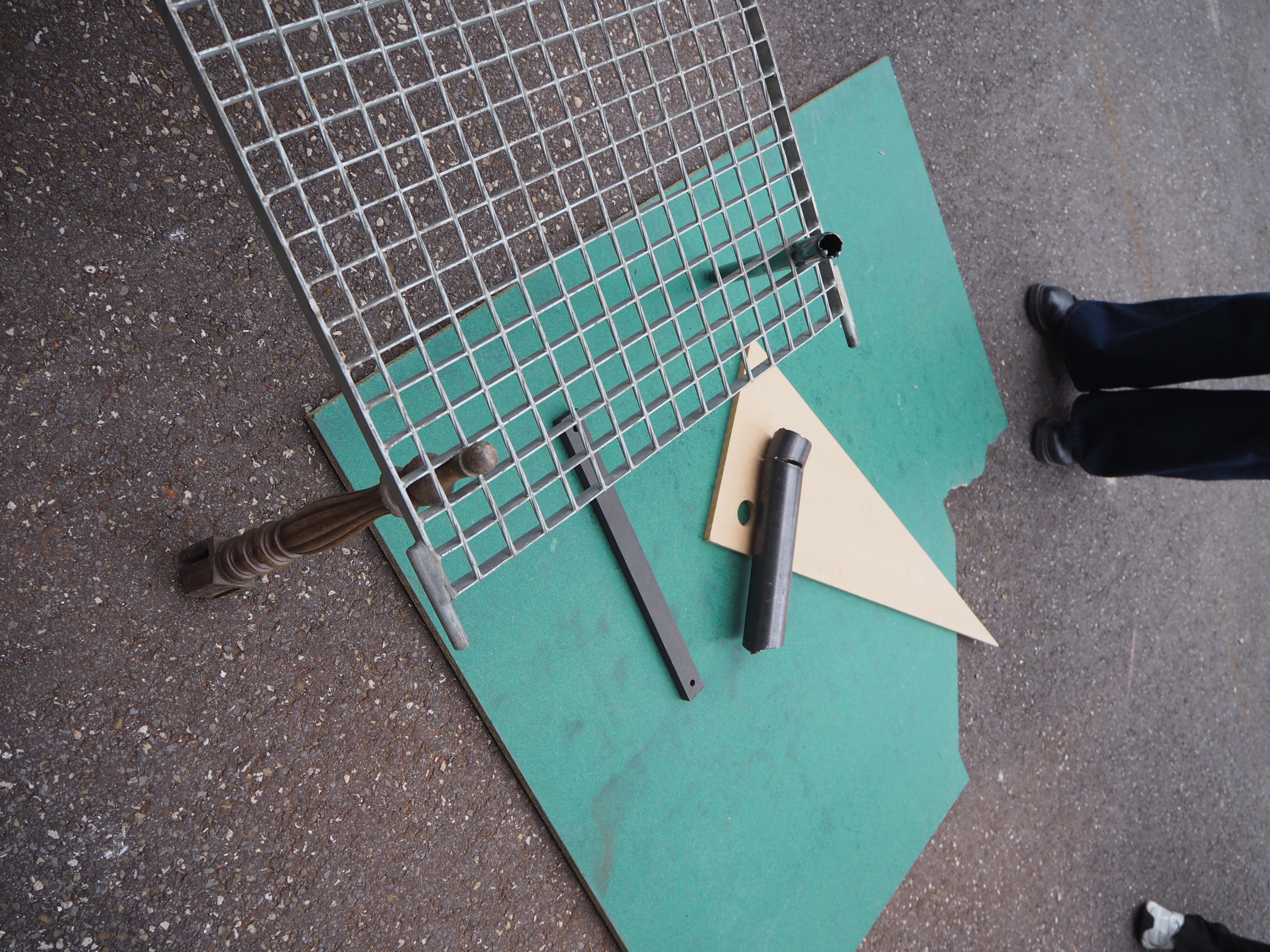 Verloren Bekisting was asked by Archipel vzw to develop a workshop for “Moment”, a workshop day on temporality. The workshop 'Zucchini On A Roof Tile' focused on creating a dinner scenography. With waste material from on and around the site, an instant scenography is created for a communal feast in the evening. Together with the students we scavenged the steel-, wood- and plastic bins from their school and curated the material. Tables, chairs, benches, and shelves formed the scenography for the communal event. Found materials were transformed and assembled into something new for the duration of the day, after which they disappeared again to the waste bins where they came from.